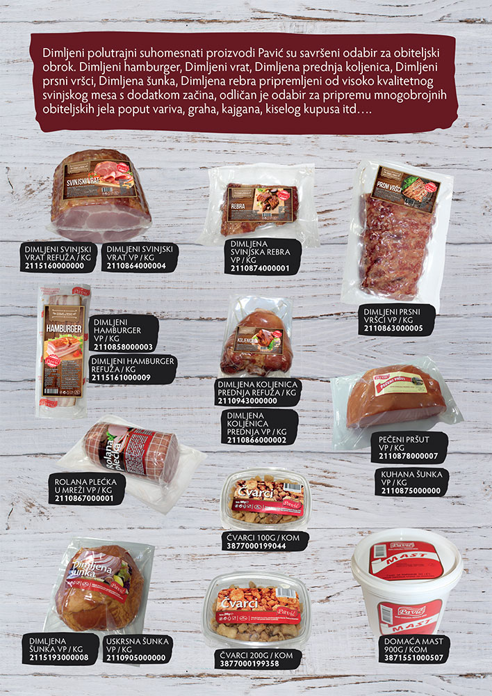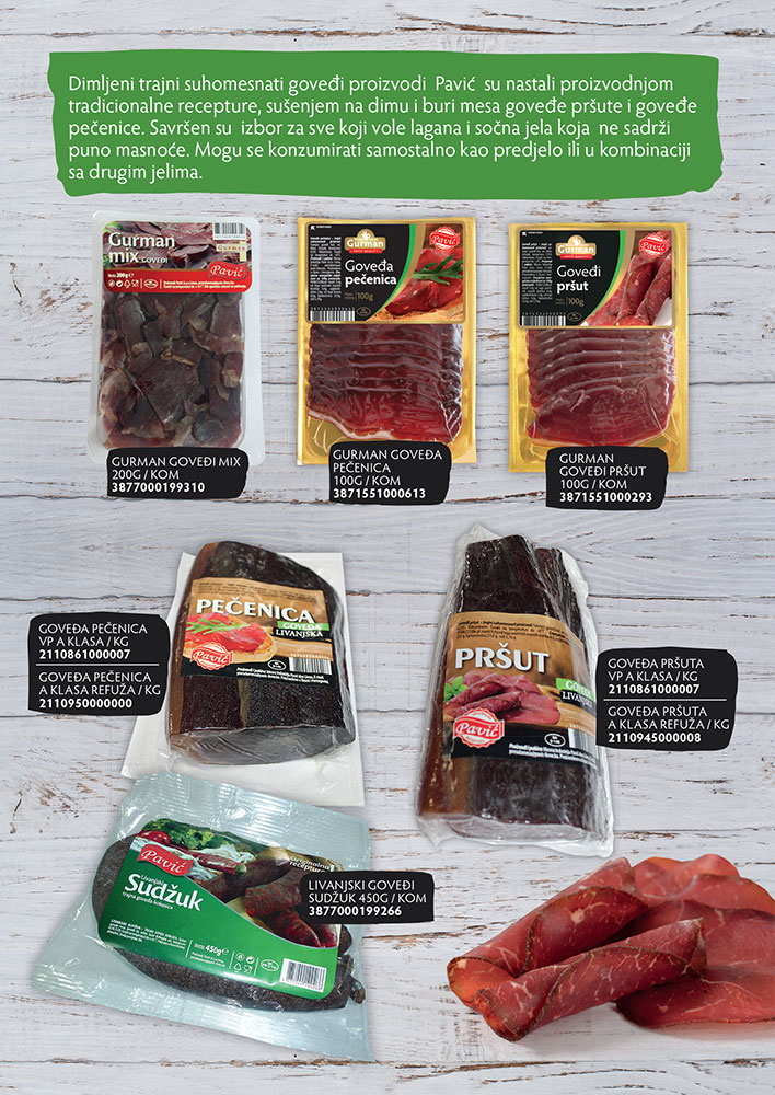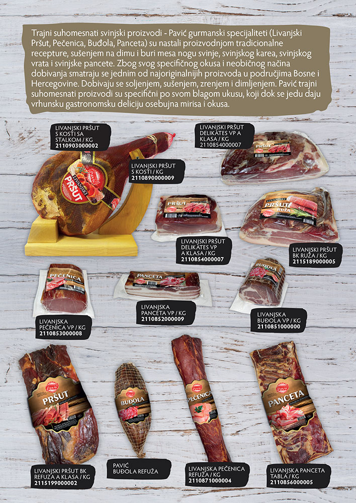 Misija firme Pavić doo – Mesna industrija je proizvoditi visoko kvalitetne proizvode od kojih neke na tradicionalan način te promovirati Livanjski kraj i tradiciju kvalitetnog sušenja mesa.